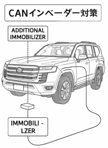 その中でも、エンジン始動そのものを阻止する追加イモビラーザーは盗難防止の要として活用できるでしょう。仮にドア解錠や鉄板破壊によりCAN-bus配線にアクセスされてしまったとしても、CANインベーダーは妨害できます。